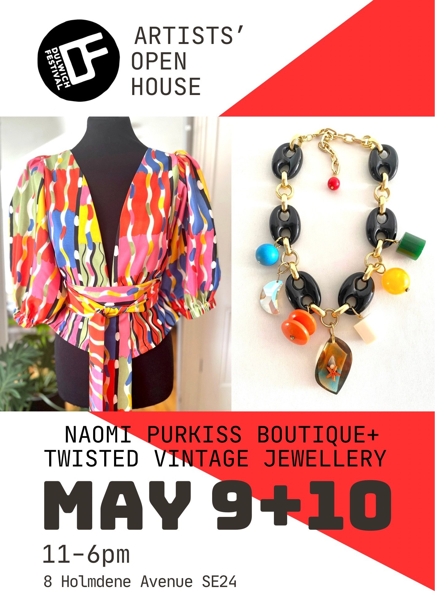 Dulwich Festival / AOH 2026 Saturday 9 May 2026 11:00 am 11:00 Sunday 10 May 2026 6:00 pm 18:00 Naomi Purkiss Boutique 1 Holmdene Ave England, SE24 9LB United Kingdom (map) Google Calendar ICS