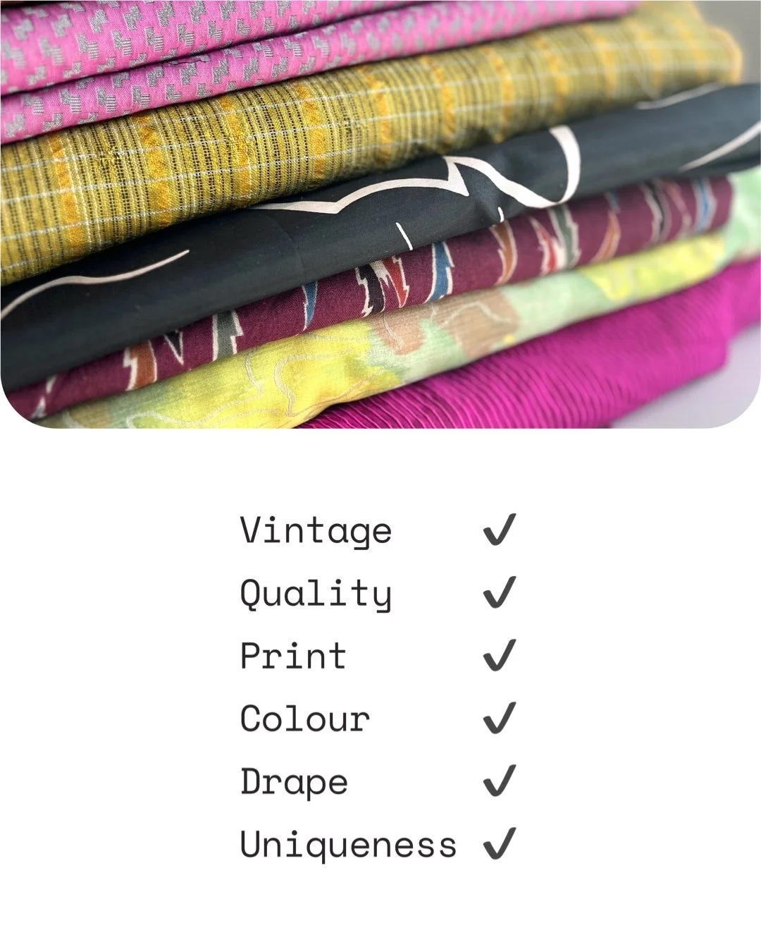These carefully sourced, original vintage fabrics are all very limited- once they're gone - they're gone!